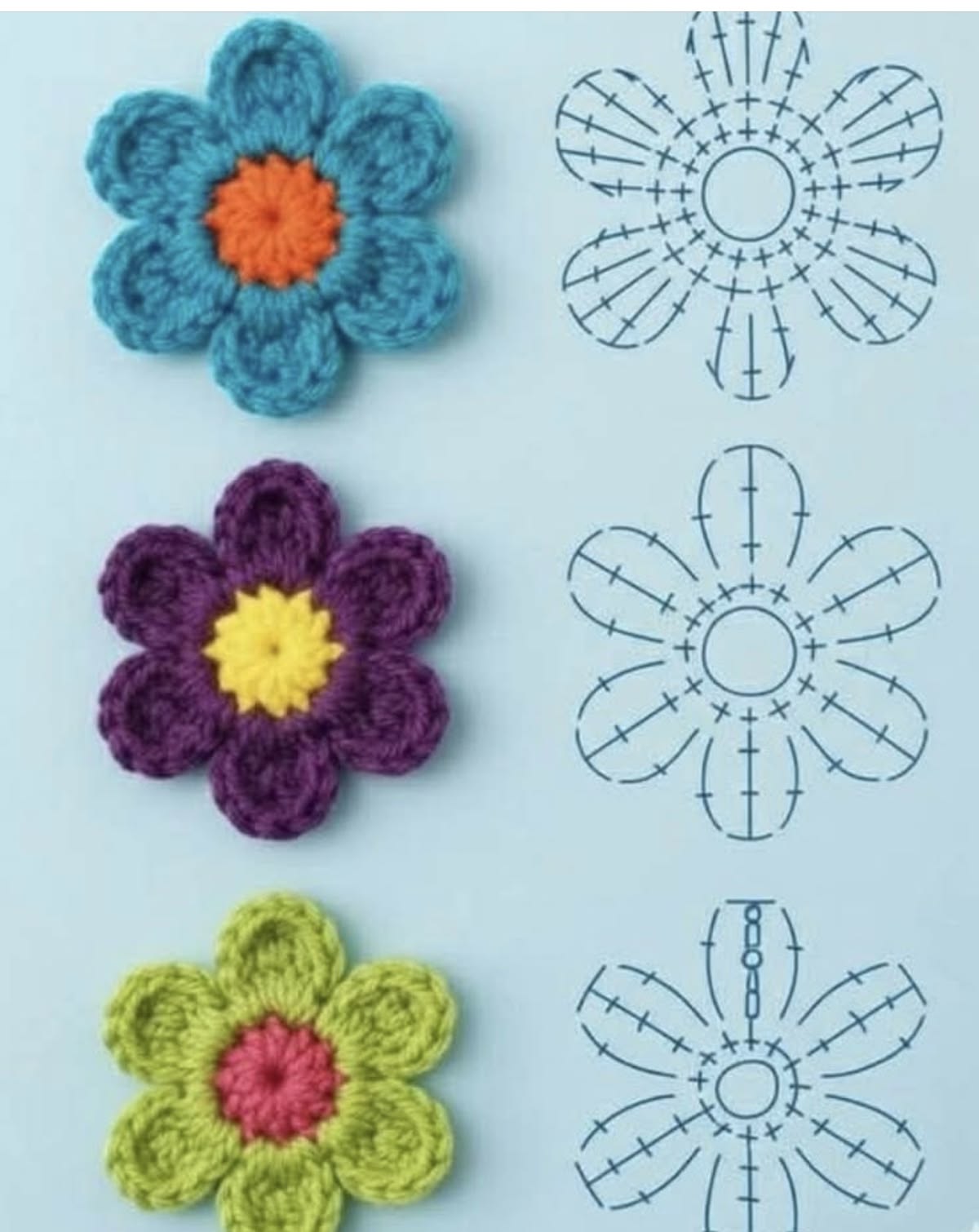 Experiment with different yarn colors, including multicolor or gradient yarns, to give each flower a unique look.