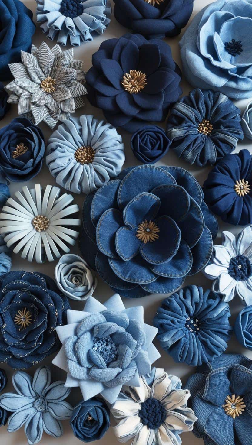 - Layered Texture: Use lace, linen, or even felt underneath or on top of denim flowers for extra visual depth.